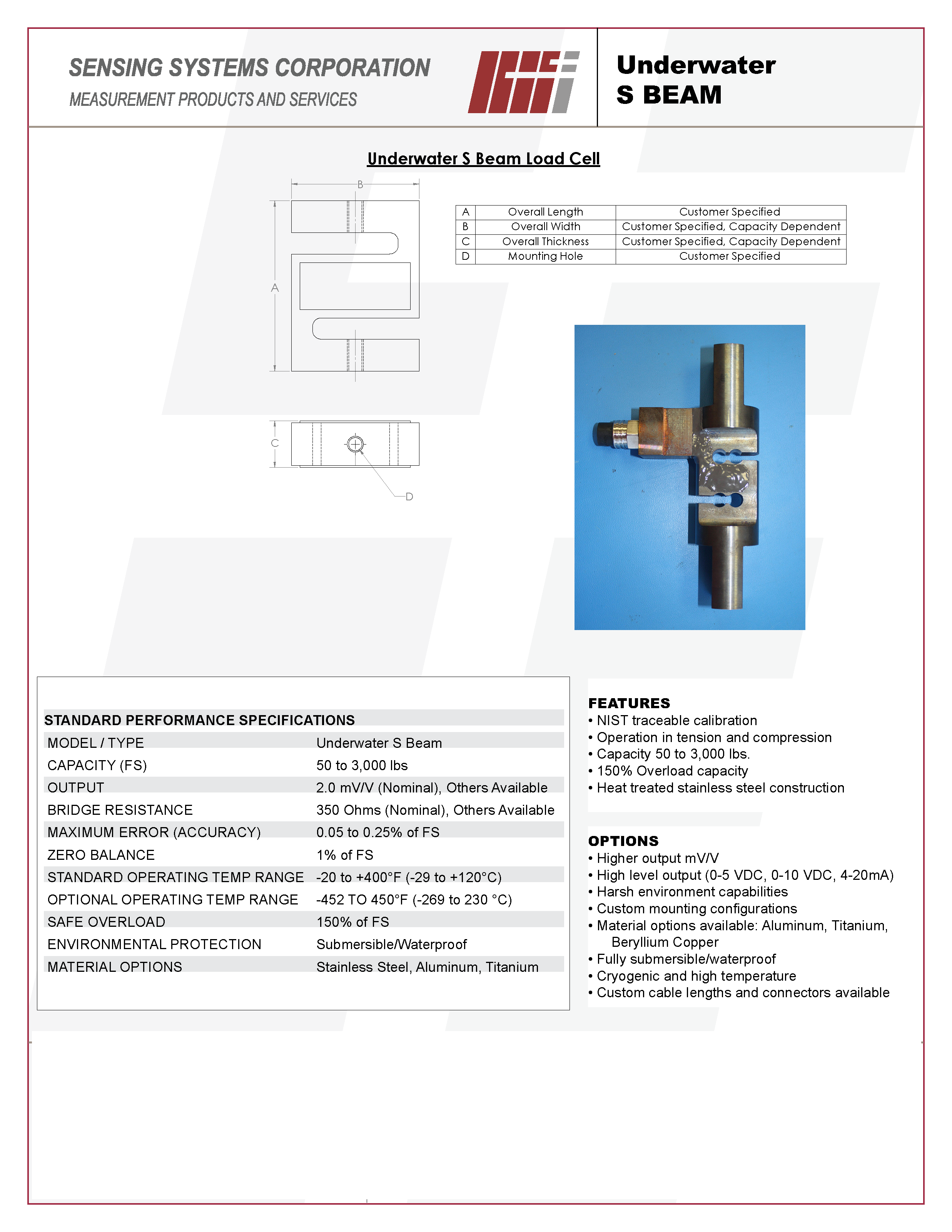 SENSING SYSTEMS 水下S型梁式測力傳感器