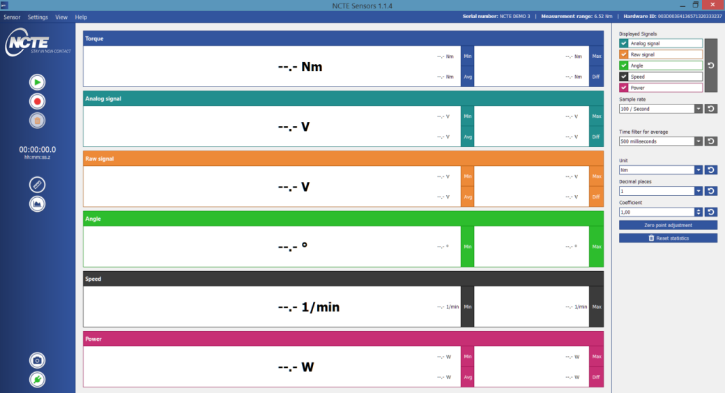 另一方面,我們的軟件由之前的簡易讀取界面升級成多功能采集數顯界面,包含扭矩,原始電壓,電壓增量,角速度,轉速,功率等完整曲線顯示和分析