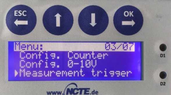 在產品進入測試之前,給IN1一個高電平3~24Vdc 的ON 信號觸發測試開始;進入扭矩測試,這里完成測試之后儀表會顯示一個峰值,顯示時間為Trigger period設置的時間;
