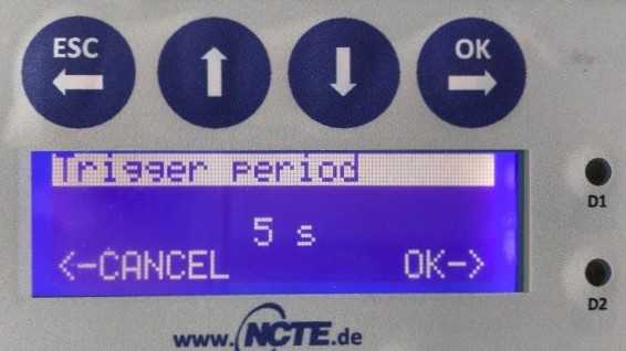 按OK鍵進入Trigger period里面,按上下鍵設置時間為5~10s(可根據測試間隔設定)按OK確認