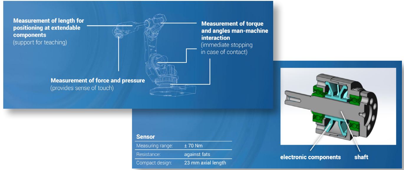 應用1,用于測量機器人關節的扭矩,集成于機器人關節之中,在有限的測量空間內感知關節扭矩。